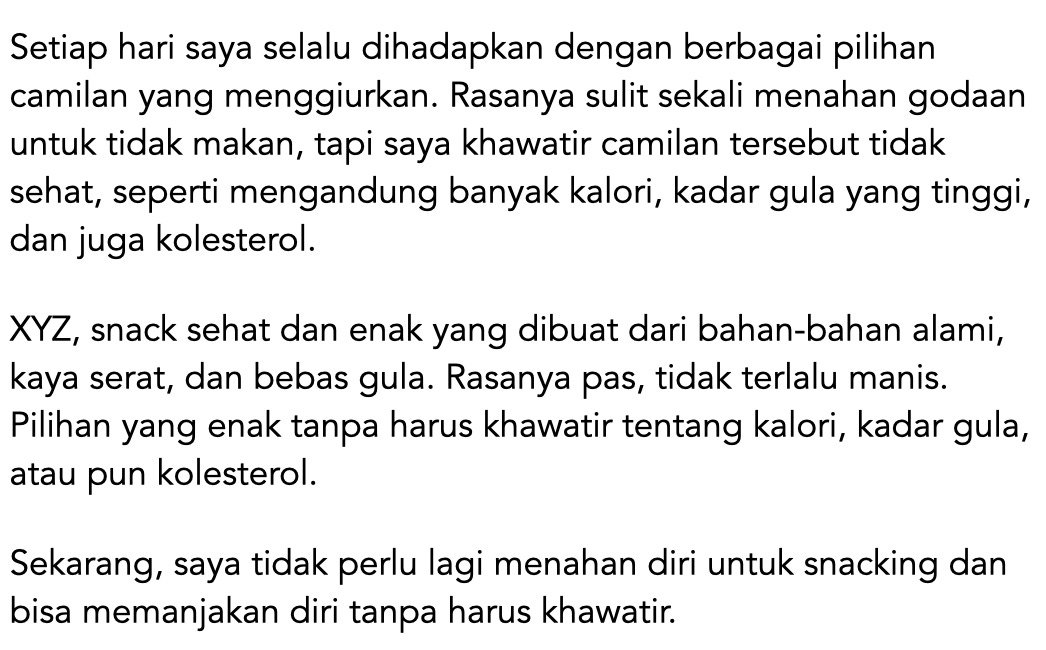 Tulisan konsep yang berisi kelebihan produk